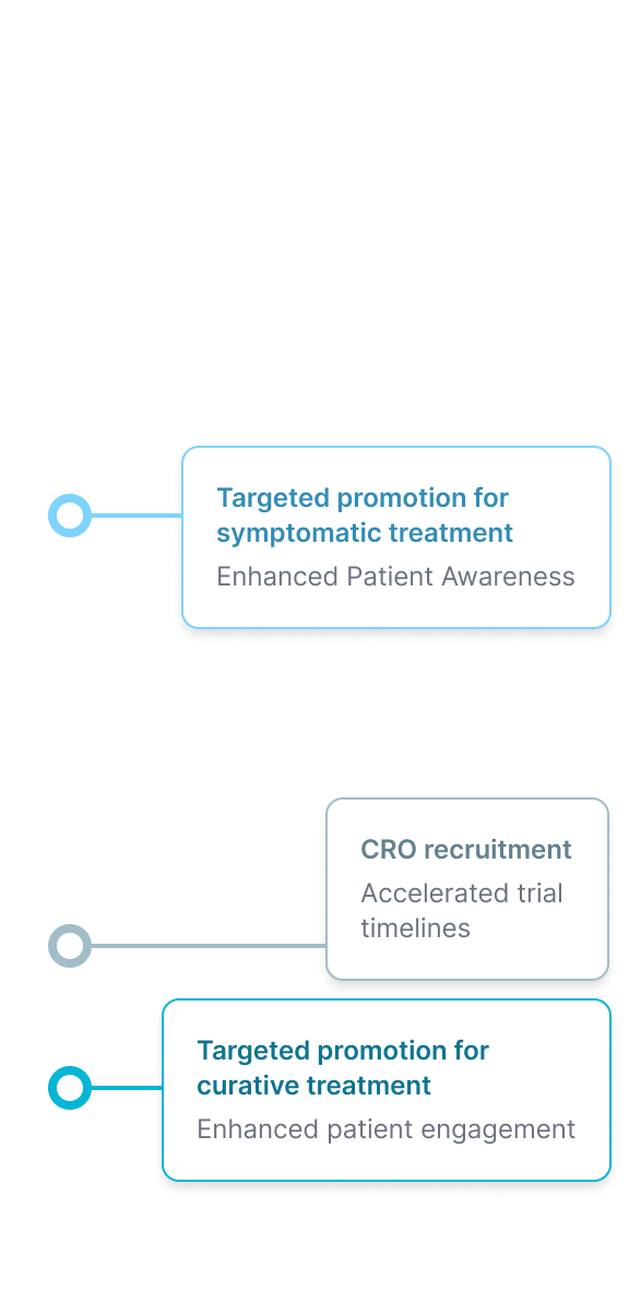- Our data clearing house offers streamlined interoperability between healthcare providers, patients, and the pharmaceutical industry, including therapy services and contract research organizations (CROs).