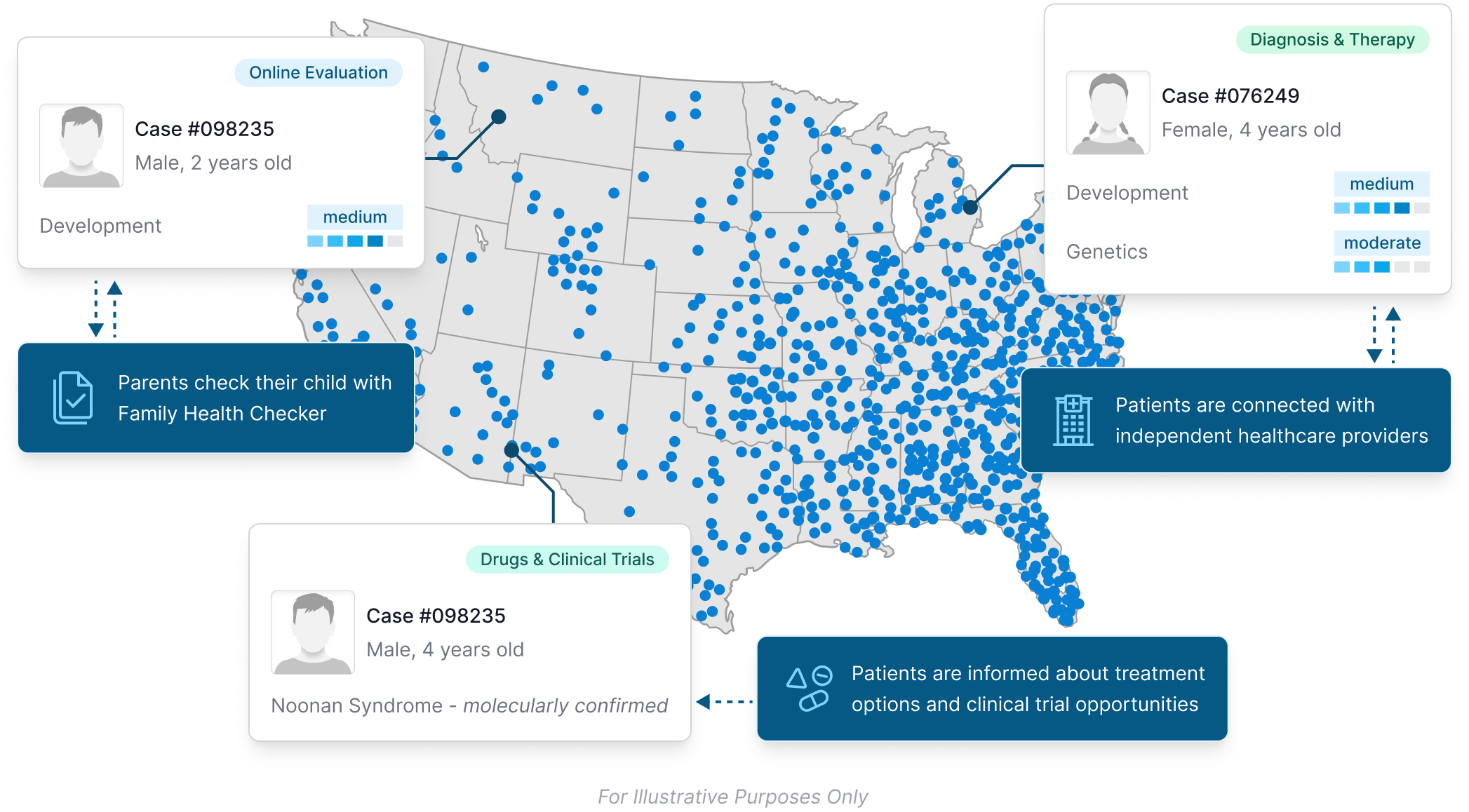 As the world leader in AI-powered image analysis to aid in diagnosing developmental & genetic disorders, and rare diseases, FDNA develops the most comprehensive database of relevant phenotypic information, crowdsourced from clinicians, patients, labs, and researchers. This real-world data, along with FDNA’s technologies, help expedite diagnosis and reduce the cost of care.