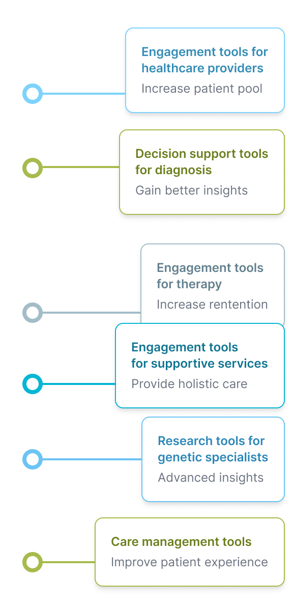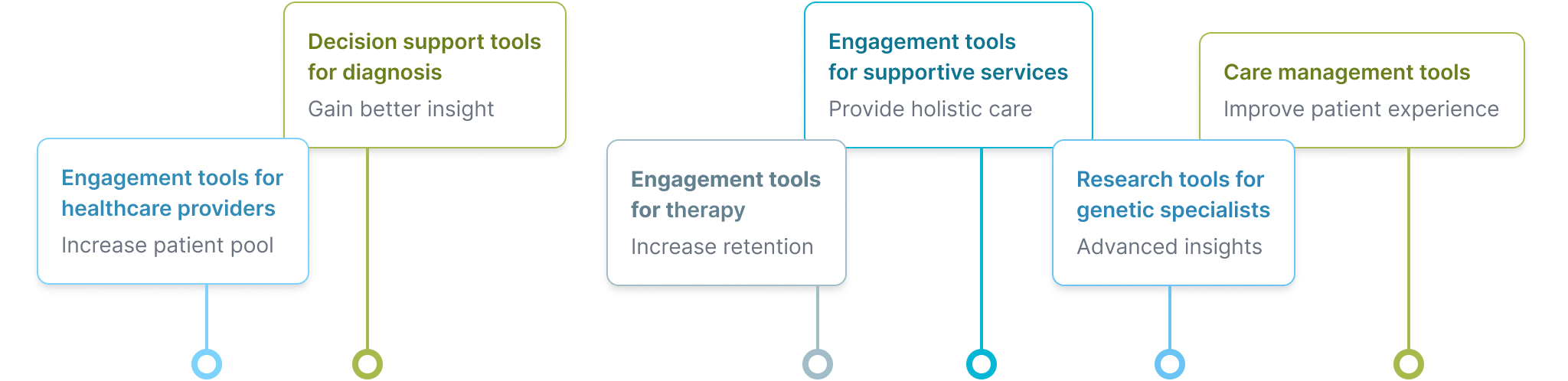 - We offer a digital front door for healthcare providers, decision support tools for diagnosis, and care management tools for therapy.