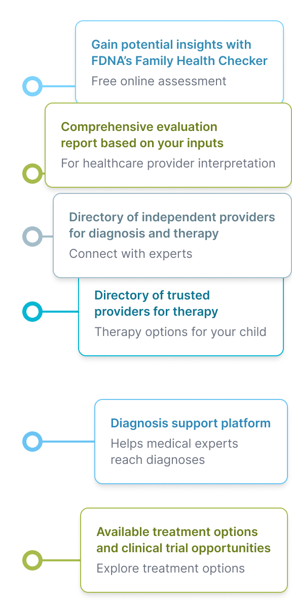 - FDNA empowers parents, school nurses, and pediatric specialists to flag potential developmental, neurological, and genetic conditions, and connect with the right specialists, as early as possible.