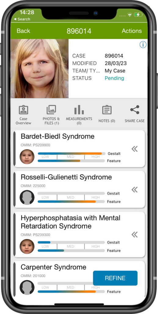 Families and Patients: Ask your doctor to add your or your child’s case to Face2Gene. The personal information will only be accessible to your doctor, but the de-identified data may help others battling a rare disease. Find detailed information about Face2Gene’s features and technology